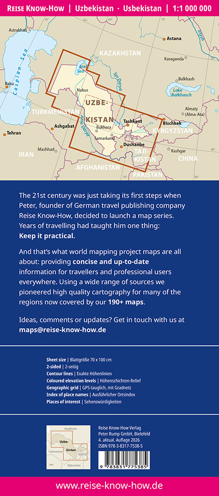 The map of Uzbekistan from Reise Know-How is the perfect companion for any adventure on the go: