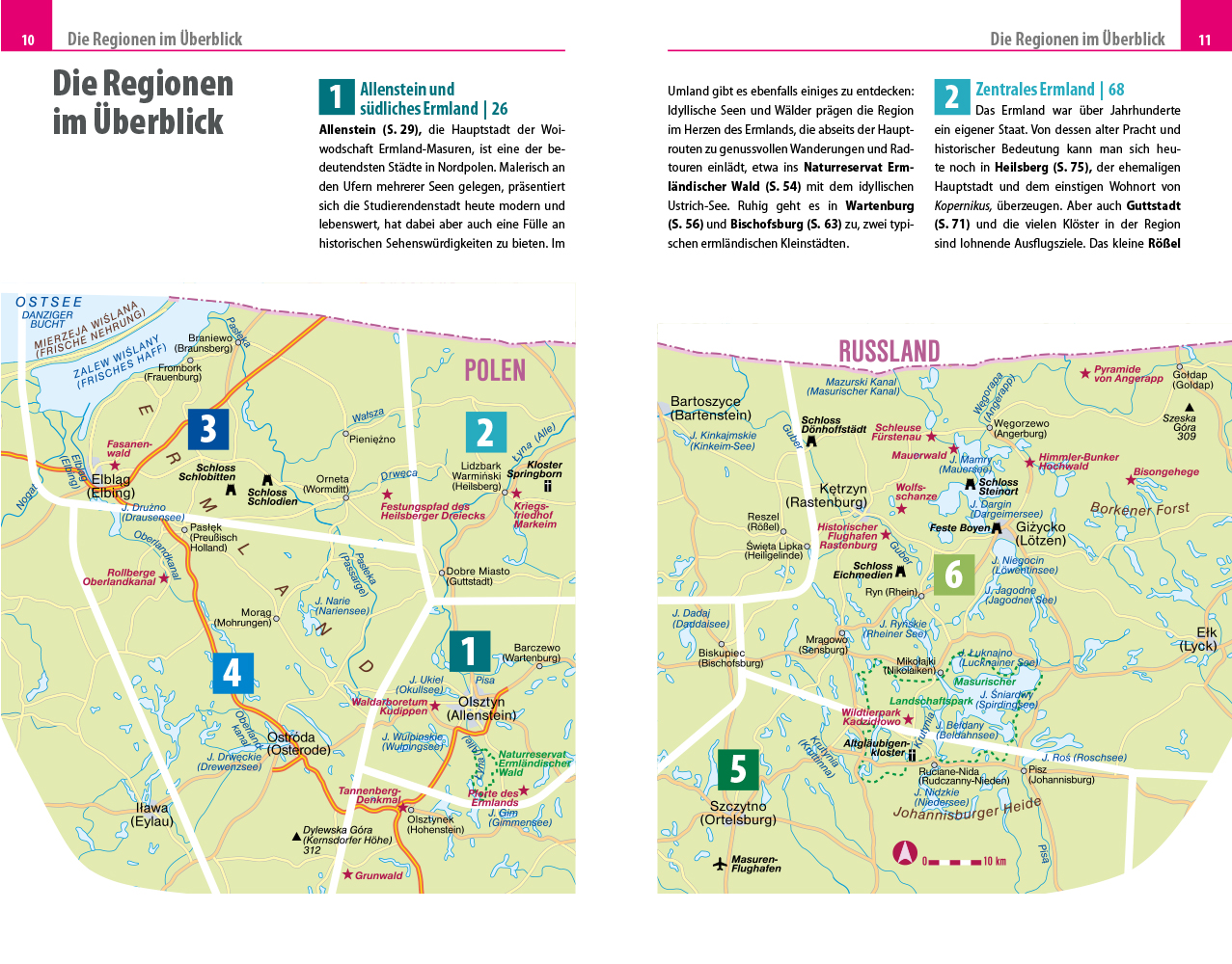 - Die bedeutendsten Regionen im Überblick: Allenstein und südliches Ermland, zentrales Ermland, nordwestliches Ermland und Frisches Haff, westliches Masuren, südliches Masuren und große Masurische Seen