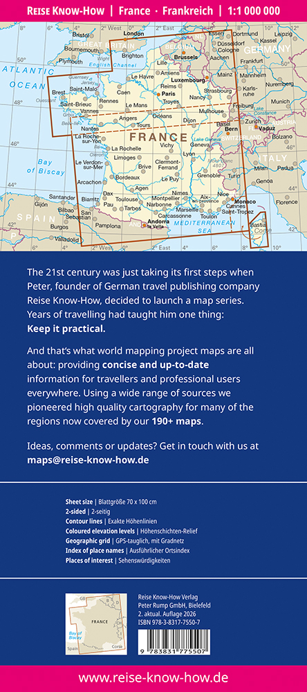 Reise Know-How Landkarten zeichnen sich durch besonders stabiles Kunststoffpapier aus, das beschreibbar ist wie Papier, sogar mit Bleistift. Der Pappumschlag ist abnehmbar, so dass sich die Karte bequem in jede Tasche stecken lässt. Eine Schutzhülle ist nicht erforderlich. Die kartografische Darstellung konzentriert sich auf die wichtigsten Informationen für Reisende und ist besonders gut lesbar. Statt einer Schummerung werden farbige Höhenschichten verwendet.