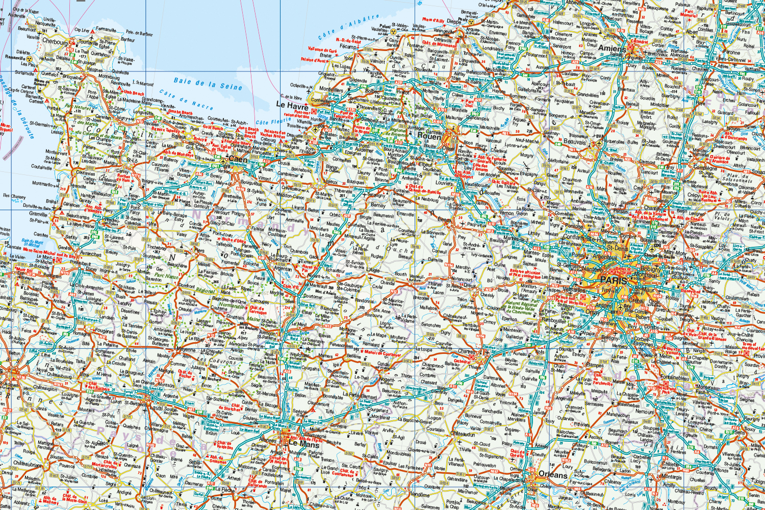 - Klassifiziertes Straßennetz mit Entfernungsangaben