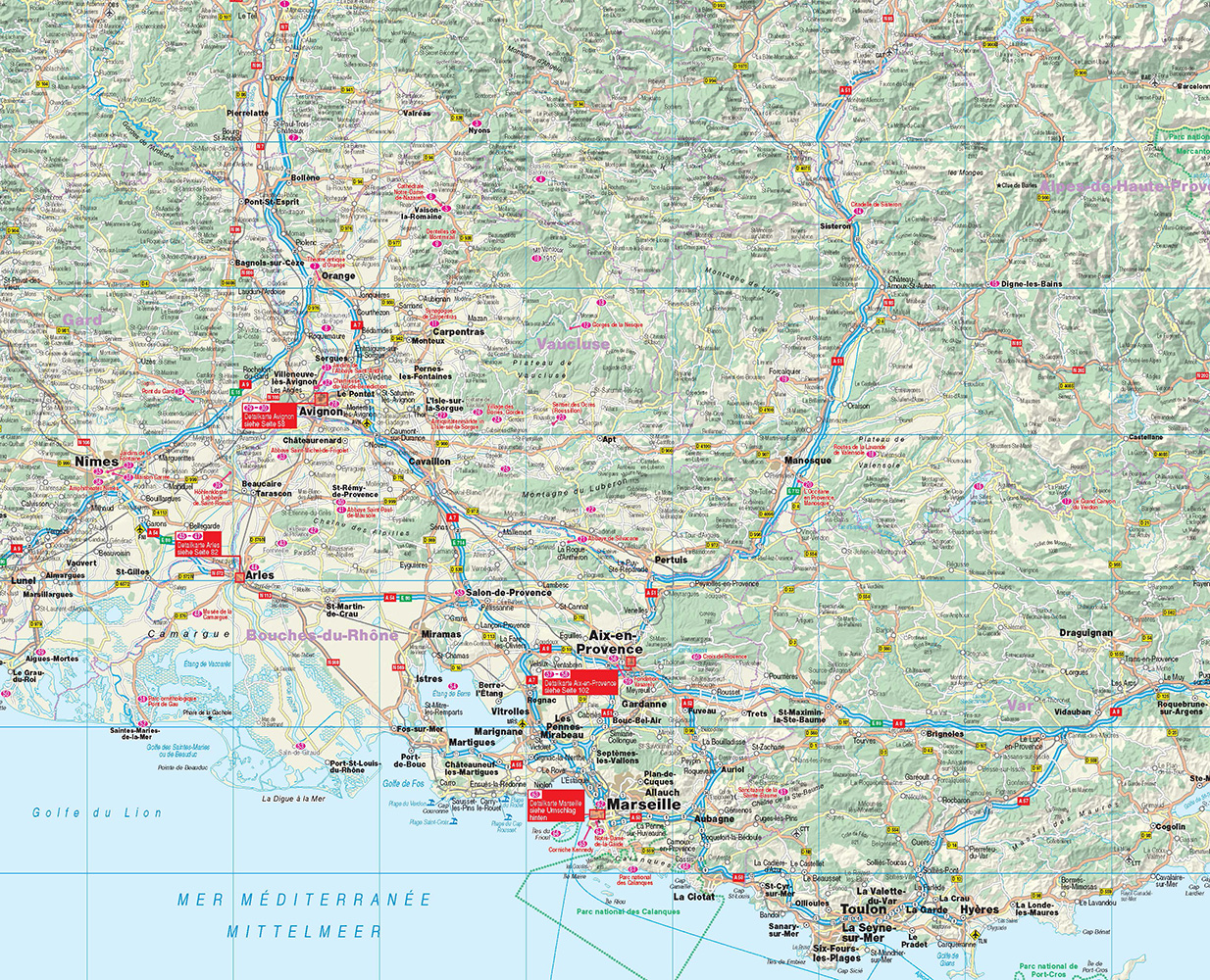 Die Sehnsucht nach dem Süden trägt einen Namen: Provence. Die Landschaft fasziniert mit duftenden Lavendelfeldern, pittoresken Bergdörfern, spektakulären Schluchten und der Weite der Camargue, in der weiße Pferde und rosa Flamingos Farbtupfer setzen. Wallfahrten, traditionelle Feste und bunte Wochenmärkte prägen die Identität der Region, in deren Küche aromatische Kräuter die Hauptrolle spielen. Die besondere Lichtstimmung der Provence inspirierte bereits Künstler wie van Gogh und Cézanne.Einzigartige Bauwerke wie antike Amphitheater, Avignons Papstpalast und der Pont du Gard ziehen Besucher ebenso in ihren Bann wie außergewöhnliche Museen und die pulsierende Metropole Marseille.
