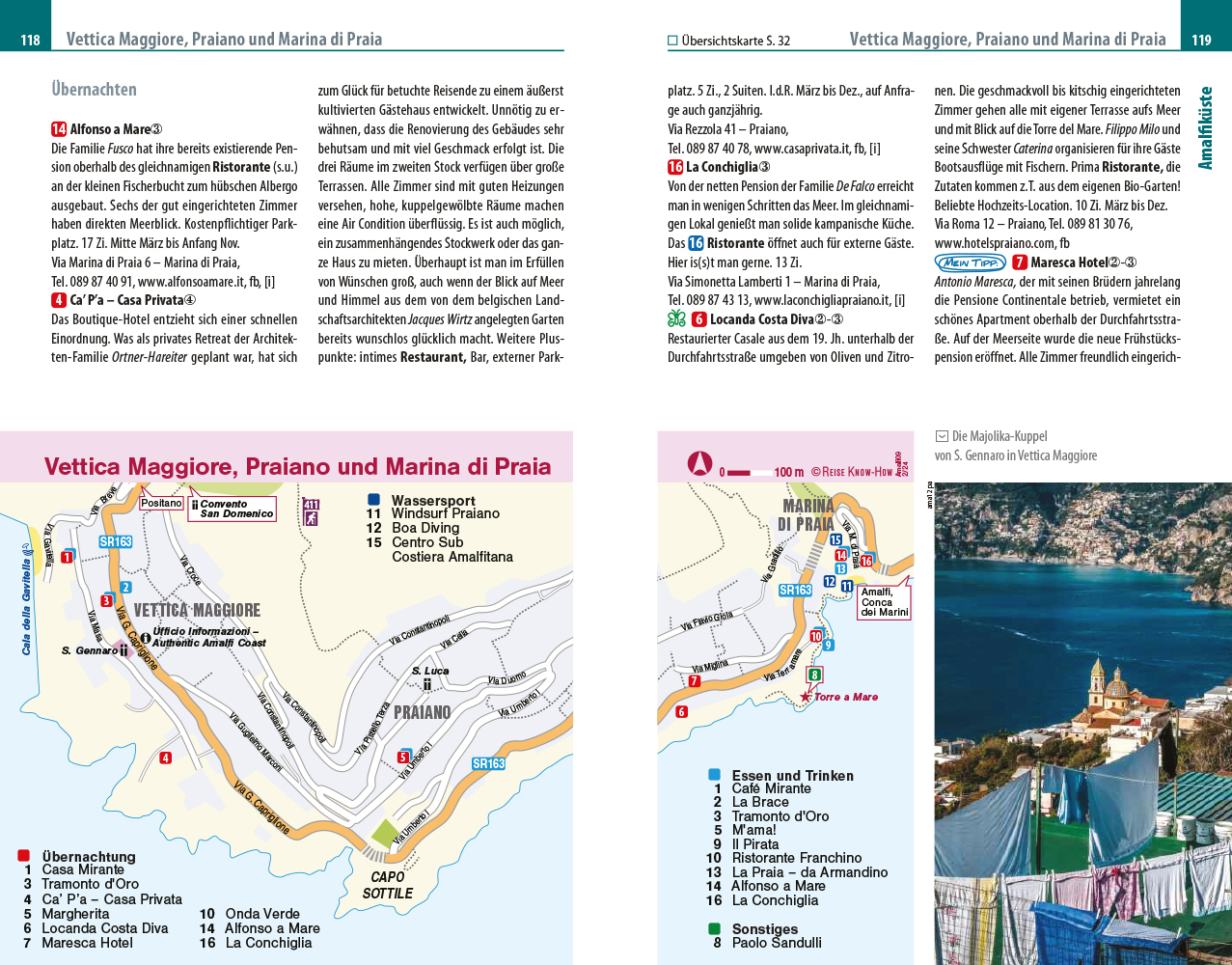 Dieser Reiseführer Cilento und Amalfiküste handelt vom Golf von Salerno, obwohl er im Titel nicht erwähnt wird. Vielen ist der Golf von Neapel bekannt, doch auch die sich südlich anschließende, weitaus größere Meeresbucht ist ein lohnendes Reiseziel. Drei unterschiedliche Küstenlandschaften öffnen sich zum Golf von Salerno. Kaum einer Vorstellung bedarf die weltberühmte Amalfiküste, raubt sie doch jedem den Atem: den Betrachtern vor Begeisterung und den Autofahrern vor Aufregung. Maurische Architektur prägt die Orte und auch der Zitronenanbau auf terrassierten Hängen ist Frucht eines intensiven Kulturaustauschs mit dem Orient. Ein gut unterhaltenes Netz alter Wirtschaftswege durchzieht das gebirgige Hinterland und zeigt sich heute als Wandernetz zwischen Himmel und Meer. Die UNESCO hat dieses harmonische Miteinander von Kultur und Natur zum Welterbe erklärt. Doch die Amalfitana besitzt noch viele weitgehend unbekannte Facetten, die es zu entdecken gilt.