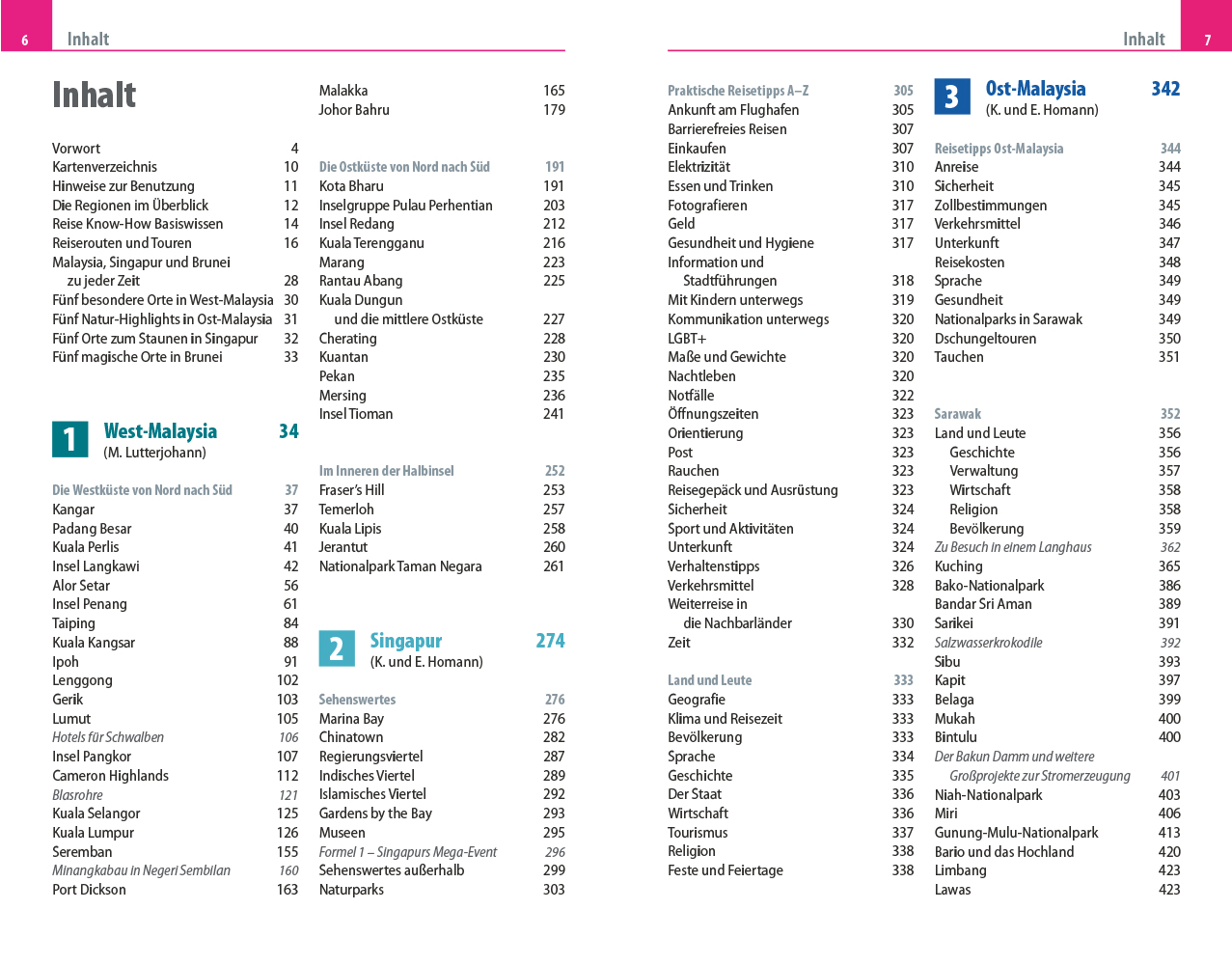 Eine Fülle von Tipps zu Unterkünften (von Hotels über Guest Houses bis hin zu einfachen Strandhütten) und Verkehrsmitteln (vom Flugzeug bis zur Fahrrad-Rikscha), zu Essen und Trinken, aber auch zum Umgang mit den verschiedenen Volksgruppen und ihren kulturellen Eigenarten und religiösen Empfindungen helfen, die zum Teil touristisch noch recht wenig erschlossenen Gebiete Malaysias auf eigene Faust zu bereisen.
