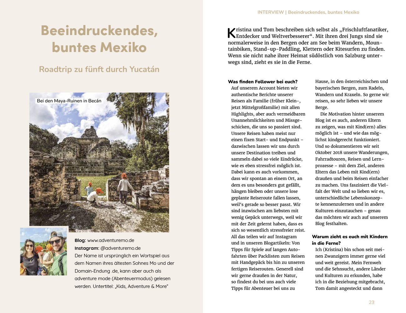 - Erfahrungsberichte von 12 Reisebloggerfamilien, die authentisch über ihre Touren rund um den Globus berichten