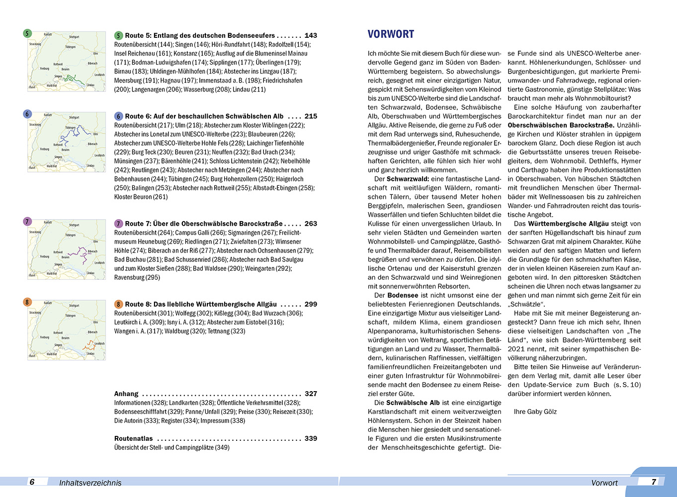 Sowohl für Neueinsteiger als auch für erfahrene Wohnmobilisten ist der südliche Teil von Baden-Württemberg ein ideales Reiseziel. Durch die Gliederung in acht einzelne, kombinierbare Routen eignet sich dieser Tourguide nicht nur als Begleiter einer längeren Reise, sondern auch für mehrere Kurzurlaube. Die acht Routen führen zu touristischen Highlights, aber auch zu weniger bekannten Zielen im Schwarzwald, am Bodensee und in der Schwäbischen Alb. Neben reizvollen Städten und Dörfchen kommen die abwechslungsreiche Landschaft und das UNESCO-Welterbe nicht zu kurz, ergänzt durch ausführlich beschriebene Wanderungen und Radtouren. Die erfahrene Reisejournalistin und engagierte Fotografin Gaby Gölz führt die Leser mit viel Begeisterung durch ihre Heimat.